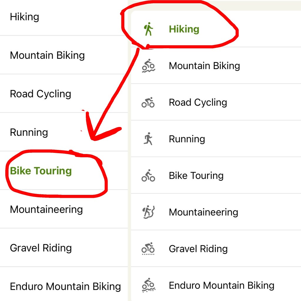 Det är då jag upptäcker inställning på min Komoot-app, alltså cykel-kartan 😂