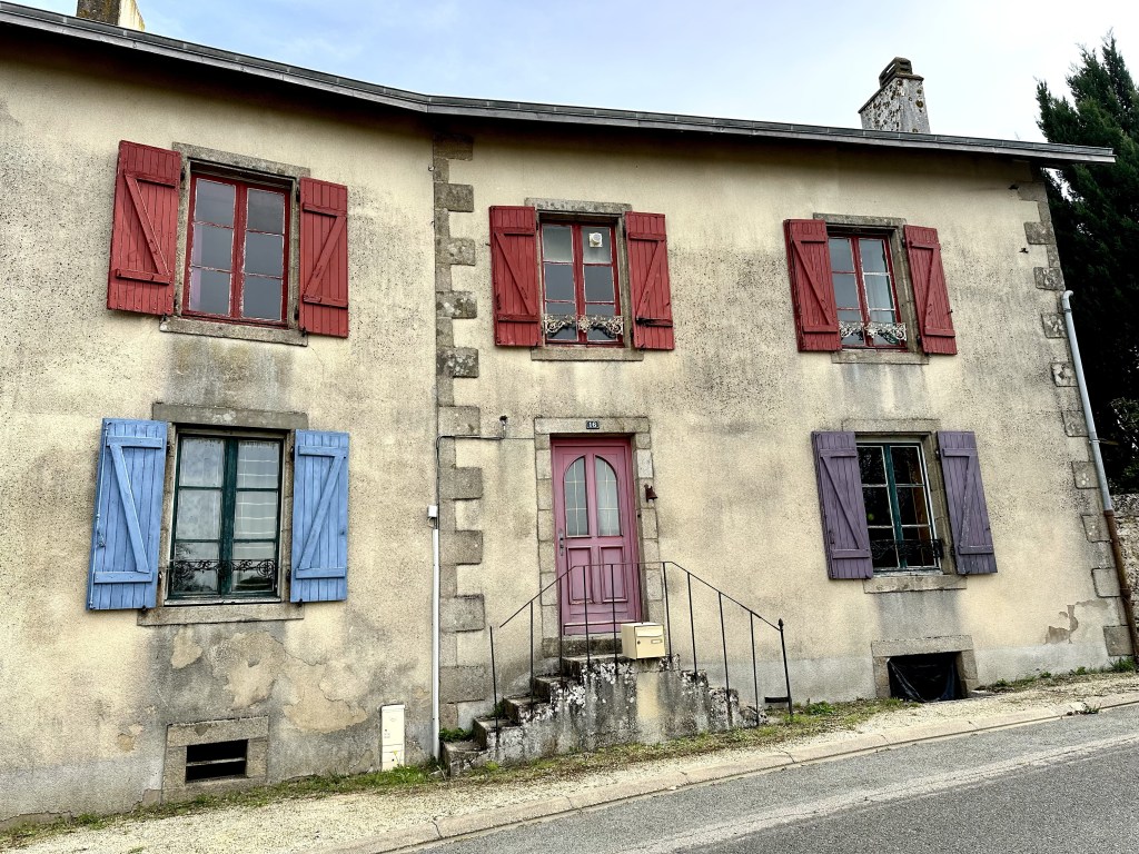 På ena sidan fint hus med blandad färgskala på sina fönsterluckor, på andra sidan ilskna hundar som gläfser efter mig.