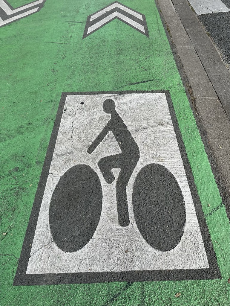 Rondeller i Frankrike är nåt speciellt att cykla i, de är ordentligt uppmärkta med gröna cyklar målade på marken. Jag har aldrig tidigare förstått att rondeller är så himla roliga.