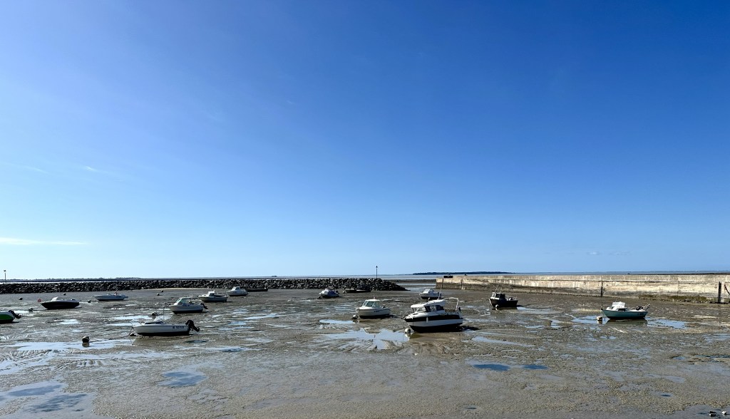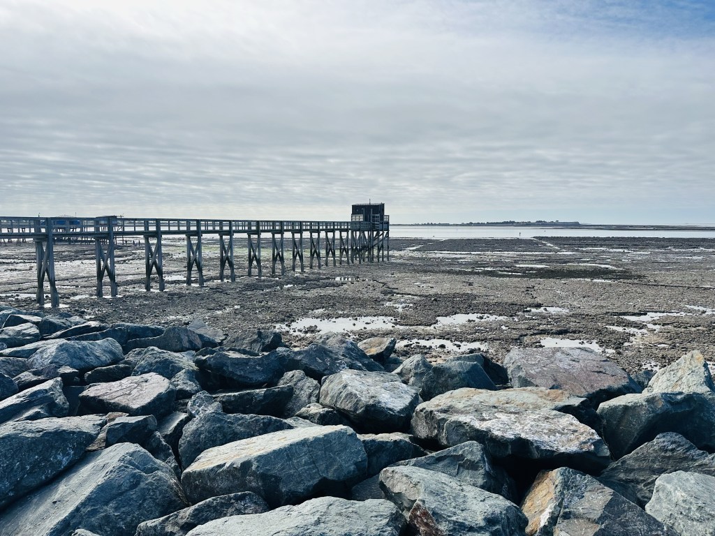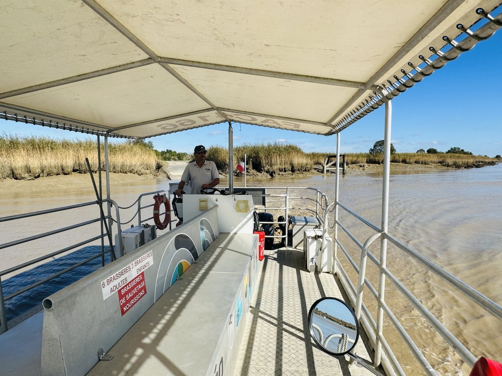 Tur jag inte behövde dra mig själv över vattnet idag, det är ganska strömt när högvattnet forsar in. Istället trycker jag bara på en knapp, och strax dyker en vänlig man upp som för 3.40€ skjutsar mig o cykeln till andra sidan .