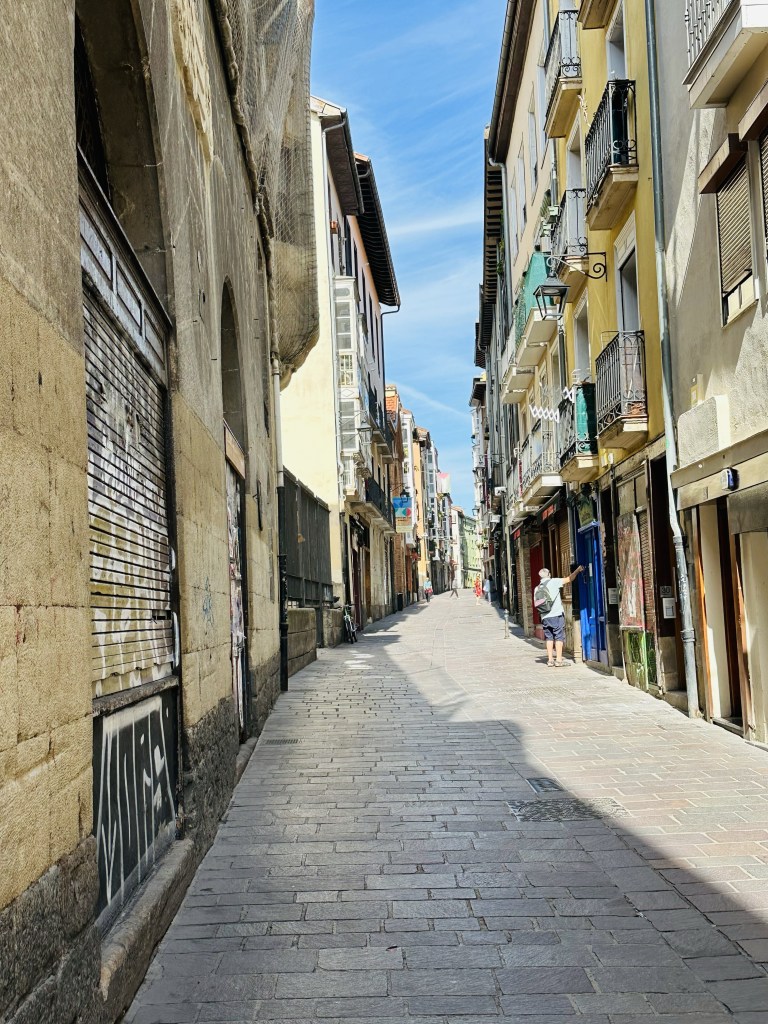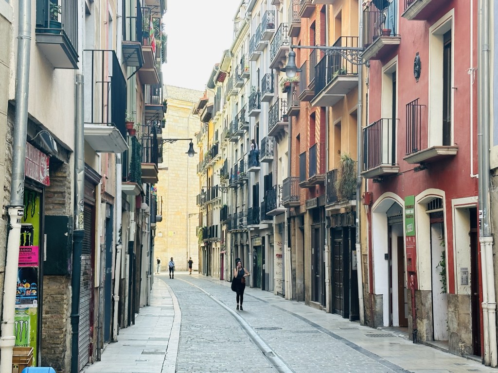 Pyrenéerna känns plötsligt väldigt höga – speciellt som fler far förbi med elcyklar eller racer-cyklister i en himla fart – så då kom jag på att ta tåget till Pamplona som ligger uppe i Pyrenéerna.