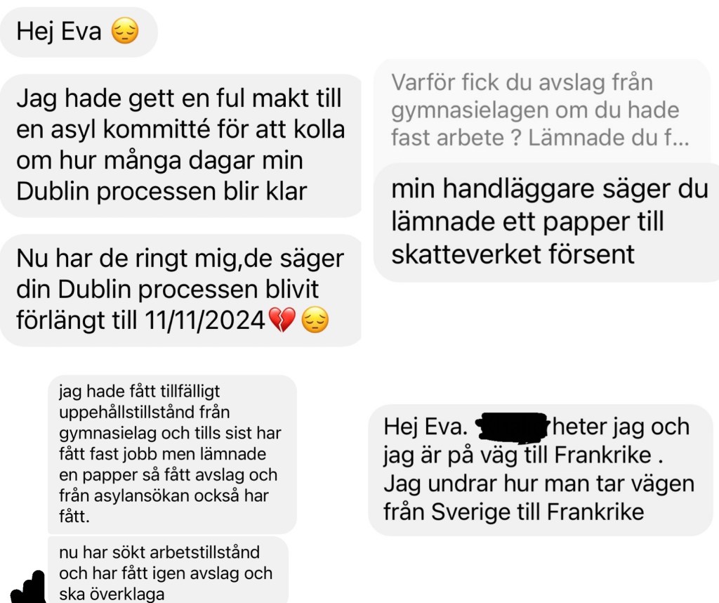Sen ”de vanliga” som vill till Frankrike och öven ”de vanliga” som har fast jobb men får avslag. 😢. Det tar liksom aldrig slut ….Men många behöver prata och få råd hur just de ska göra/ tänka .