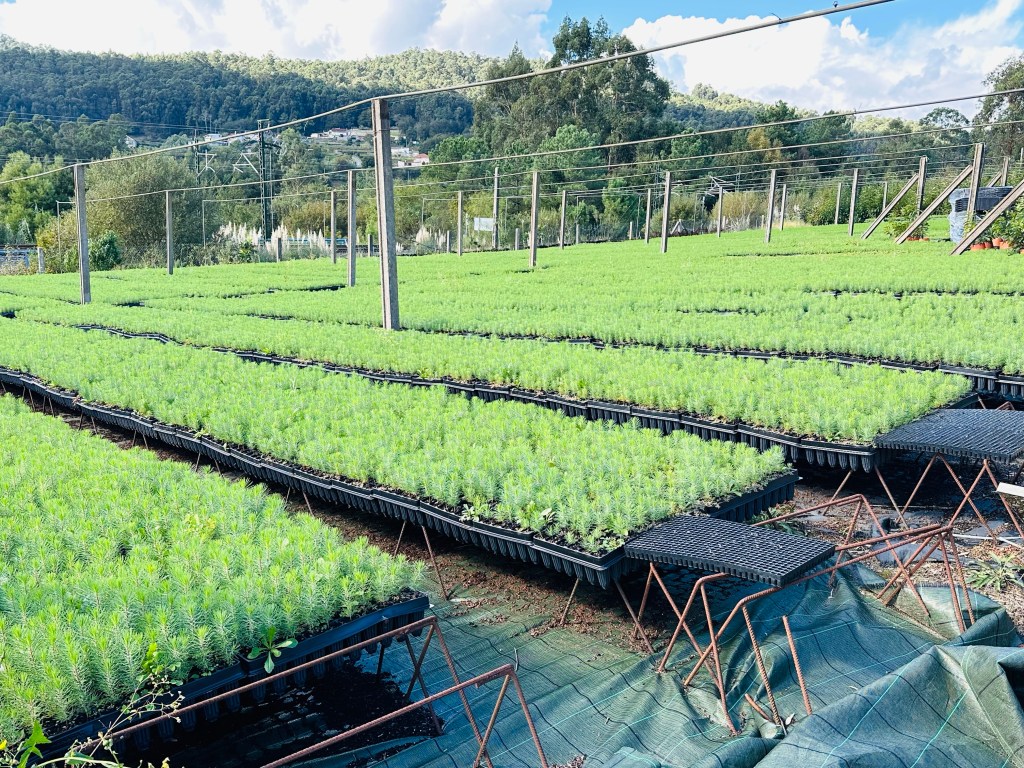 Sen alla kålodlingar, nu i oktober planteras det ut nya plantor till våren, vårodlingen börjar i oktober. Det är verkligen varenda trädgård som odlar kål.