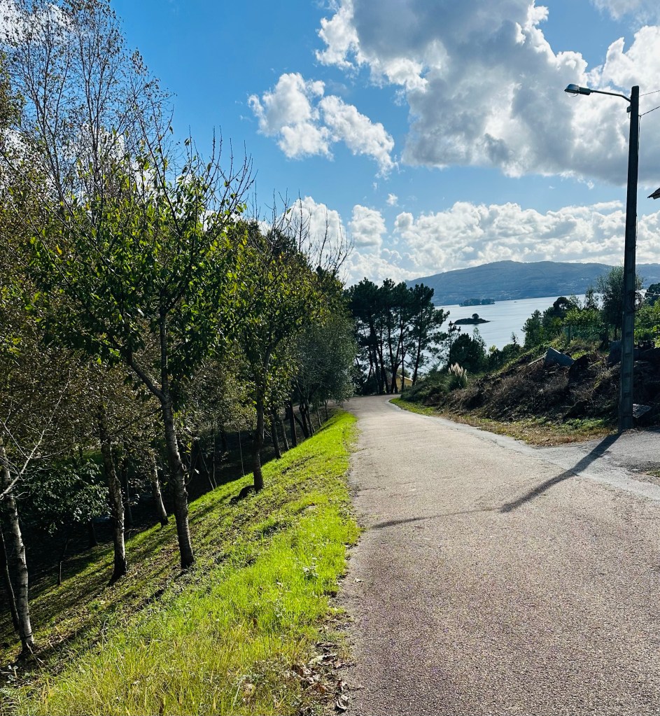 Cyklar in i en by, uppför ett berg, nerför berget och till nästa by, på ett ställe är majsåkern kvar av gammal icke skördad majs, på nästa åker har de byggt underbara stenstolpar att låta vinrankorna klättra uppför.